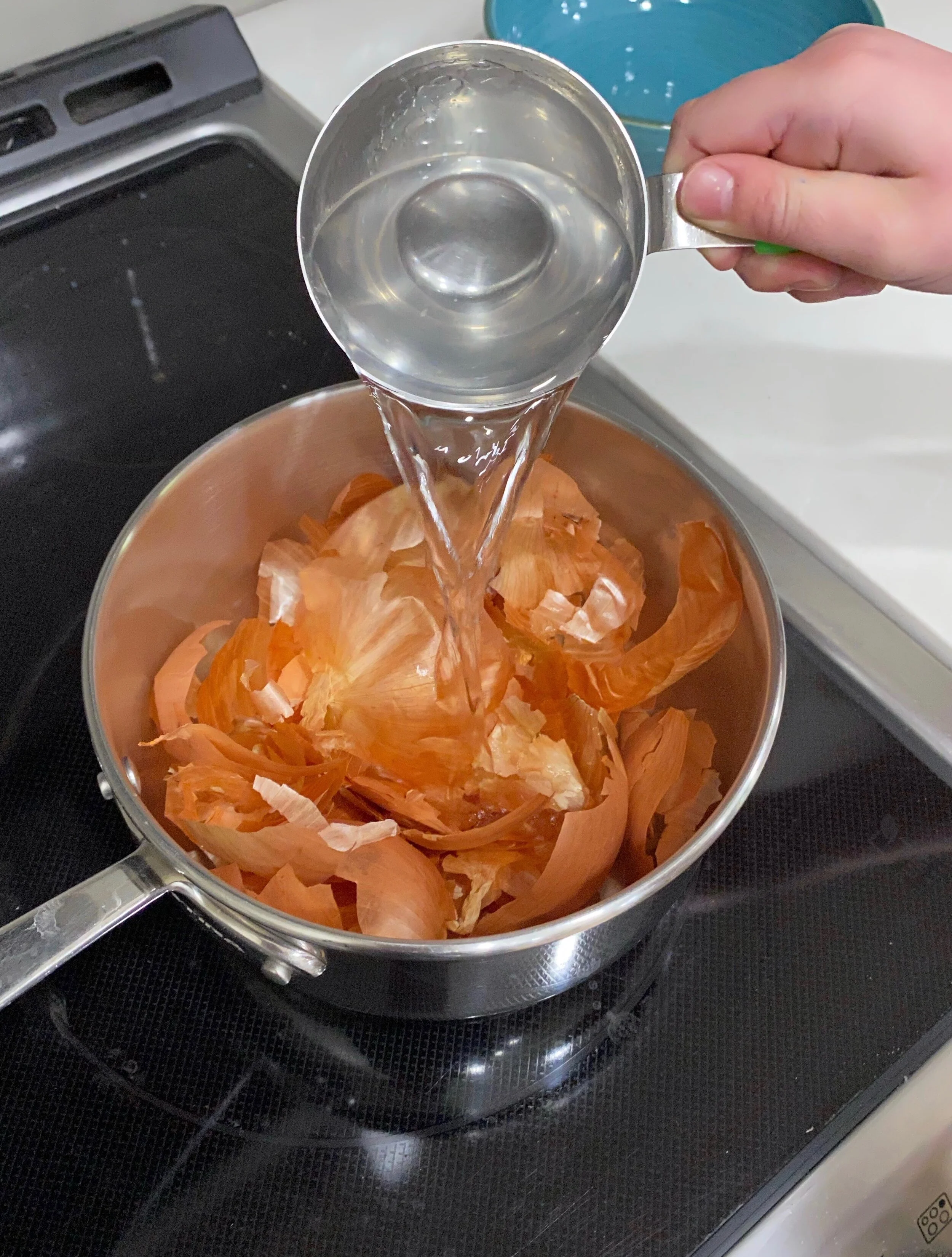 • Create your dye bath → 1 cup of food scrap, per 1 cup of water (use just one type of food scrap per dye bath)